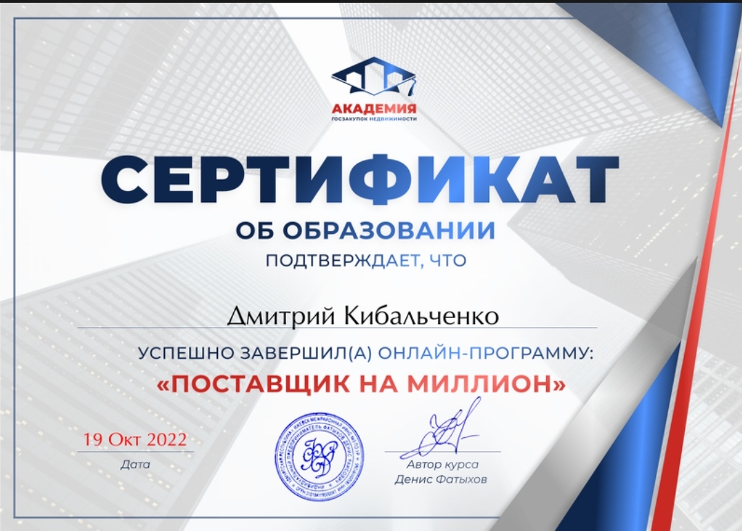 Хочу выразить благодарность Дмитрию Кибальченко за помощь в продаже квартиры через Госзакупки. Дмитрий сопровождал на всех этапах, нашел строителей, для ремонта квартиры, постоянно был на связи, консультировал по всем вопросам. Торги выиграли, квартиру благополучно продали.