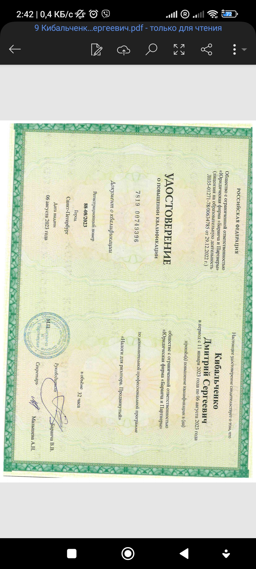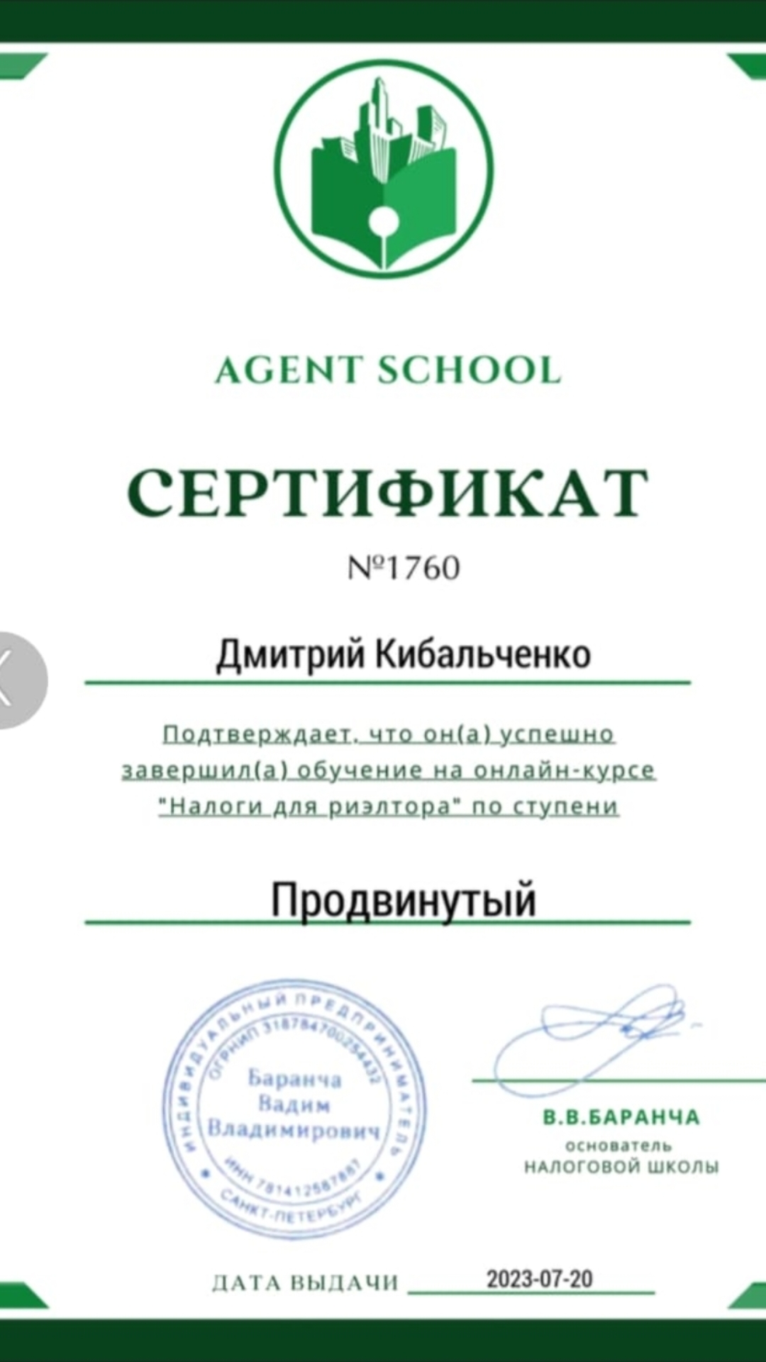 Хочу выразить благодарность Дмитрию Кибальченко ; помог купить комнату в комунальной квартире дешевле чем хотел хозяин , помог списать долги по коммунальным платежам что были на предыдущем собственнике и выписал через суд предыдущего владельца. Рекомендую !